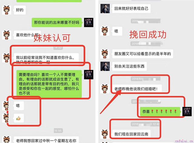 所以,建立舒适感,意味着改变你自己,提升你自己,控制好你自己的情绪,给对方创造更多的情绪价值。对方如果在跟你复联的过程中,感受到你的改变和你提供的舒适感,那么基于感情基础,对方还是很乐意吃回头草的。