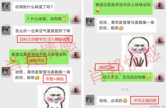 适当的顺应目标话题,暧昧推进,但同时自己掌握决策权,让目标无形中被自己的个人价值所吸引。通过这样的方式,将自然聊天慢慢推进到暧昧聊天内容。