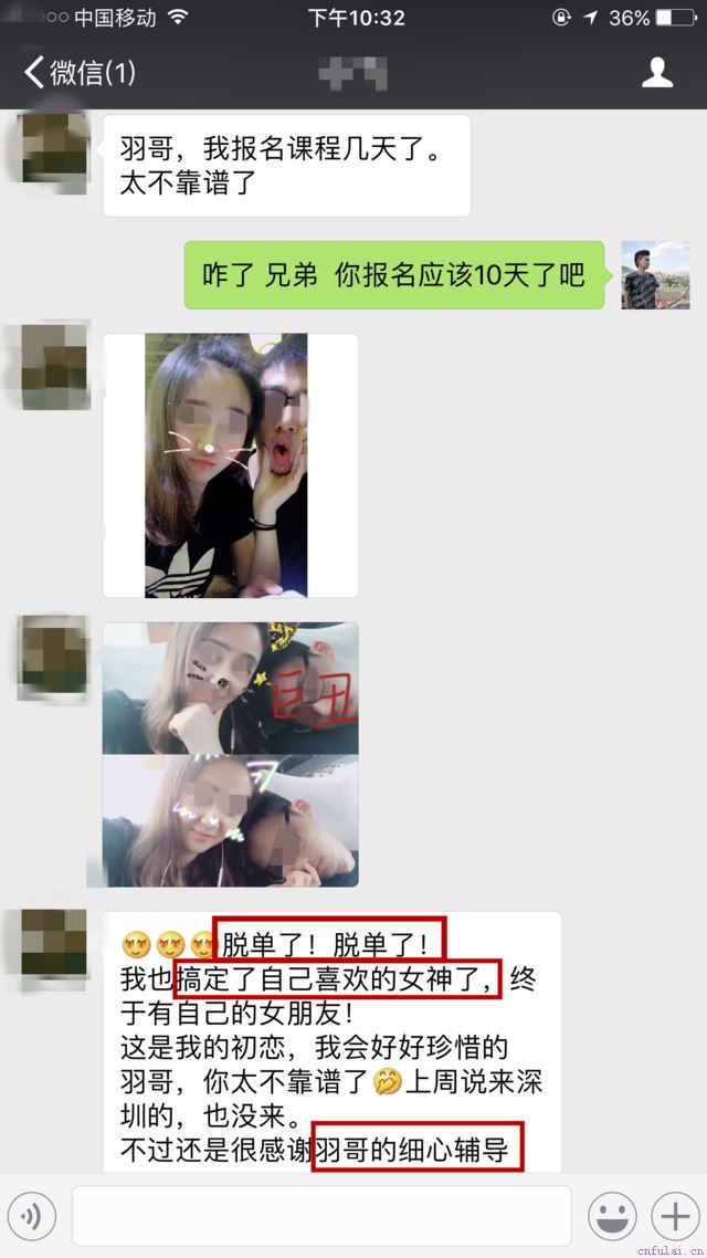 羽翼导师一个学员,他长得不高不帅,但是,选择了羽翼导师,在导师耐心的指导下,自己也主动配合以后,也是能够搞定自己喜欢的。