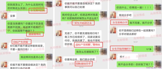 有一次,他们领导交给了他一个任务,需要去外面出差几天,而且这也是他们领导给他的一次机遇,只要完成任务,那么他升职的可能性非常大。只是我不想让他离开我身边,就这样我和他大吵了一架,进入了冷战。一周过后,我是在守不了了,就给他打电话,问他到底想怎么样,结果他却告诉我说想要分手,我不同意分手,就把他挽留了回来。可是从那次之后,我们的感情就变质了,他很少再主动联系我了。很多时候都是我找他,刚开始还回复我,慢慢的信息也不回了。直到一天晚上,我给他发微信质问他,到底是什么原因,他要这样对我。