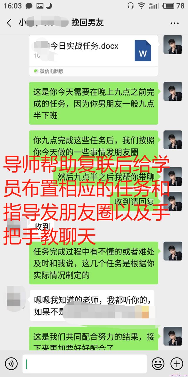 针对小倩和男友王先生的实际情况,导师并没有直接的去帮您小倩去做挽回,反而是先要求小倩进行了几天的断联,之后给小倩做了以下三步走挽回。