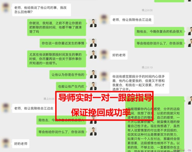 此方案为私人订制方案,不要盲目效仿。我们强大的导师团队,就是你感情感情的保障,如果你正在为感情发愁,想知道如何挽回男友?如何挽回男朋友的心点击与导师进行一对一的沟通,我们会帮你挽回感情,追求真爱,分离第三者,还你一个完美的爱情。让你得到本质的提升。如果你的感情有第三者插足,我们会有专门的分离师,首先对第三者进行分离,分离过程为了保证学员挽回成功率,全程由分离师操作,为学员创造机会。