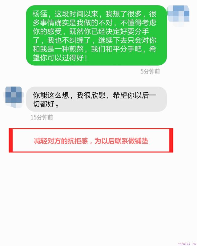 李琳与杨猛情况,是属于真性分手。真性分手的问题比较多,他俩的问题主要体现在因为长期的矛盾积累导致的负面情绪的积压,进行升级为对个人的负面印象增加,没有了往日的舒适感,最终失去了信任甚至厌烦,直接导致了分手。所以,姑娘们,这种情况在挽回初期就需要断联冷冻,防止对方激发对方的反感情绪,现在断联的目的就是以退为进,降低对方的防备心,使用一个逆向思维法,降低对方的抗拒感,一步到位由低位到高位,掌握主动权,激发对方的强烈好奇心。于是,由我们的导师编辑了一条挽回短信发了过去