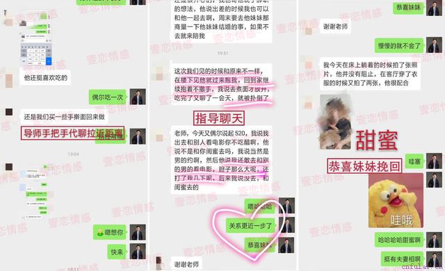 如果你的感情有了新欢或者出现第三者的情况导师团队也会针对她和新男友制定计划,进行一步步分离,瓦解他们的关系。整个分离实施由导师操作,目的是在保护学员的前提下给学员制造机会。