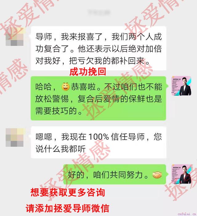 此方案为专属私人定制,如若盲目效仿,后果自负。想要导师根据你的情况制定属于你的挽回方案,想知道如何挽回一段爱情?一招挽回爱情那么点击。,把你的情况细致地给导师描述一下,我们将会立即给你研制方案,给感情上一个保险,让爱得偿所愿。如果加不到老师的,你可以点击老师的头像,在软件上私聊我,你离成功挽回只差一个微信,据统计,90%以上添加老师的学员获得了拯爱成功,你还在等什么?
