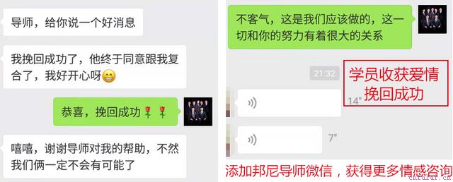 如果大家有什么情感问题需要咨询的,可以点击我的头像,添加我,跟我们一对一的咨询我们会根据你和男孩的不同性格和你们的现实情况进项全方位的分析解答。今天添加辰辰导师,发送我要学前20名将有机会获得挽回秘籍!当然如果你的案例中出现第三者的情况,导师团队也会针对她和新男友制定计划,进行一步步分离,瓦解他们的关系。此方案为学员一对一私人订制,切勿模仿。分手是一件非常痛苦的事情,而我们正是为你分担,帮助你解决难题的领路人,如果你现在正在遭遇情感的困惑与不解,那么请点击咨询导师,我们会帮你分析你这段感情中所存在的原因以及后续操作方法,教你分手后怎样挽回,并且给予你课程与建议。