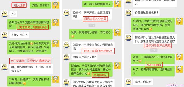 很多人在重新建立联系的时候,就迫不及待的想和对方恢复关系,但往往这样只会把你前面的铺垫的一切化为飞灰。咨询师在帮助思语联系的时候,为她制定了一系列的话题,同时不会让学员暴露个人的需求感,同时可以在沟通的过程中,展现个人价值,对男方制造二次吸引。