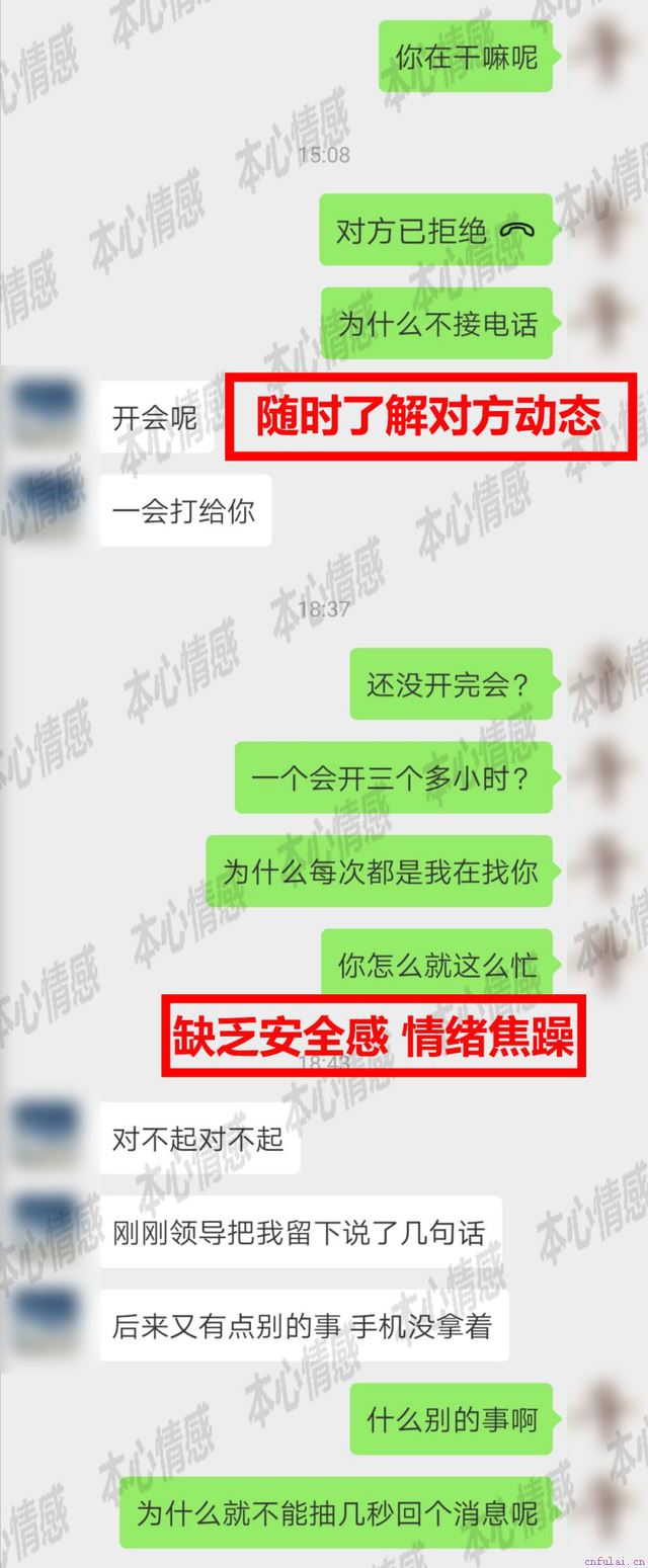 小丽是一个很容易多心的人,最初建立的安全感在闺蜜的三言两语之下分崩离析。于是她经常给小杰打电话、聊微信,要时刻了解对方在哪里做什么,有时小杰忙得来不及回应,小丽就总觉得自己熬不过异地恋。小杰在朋友圈发同事聚餐照片,她就把照片里所有的女生都打听一遍。