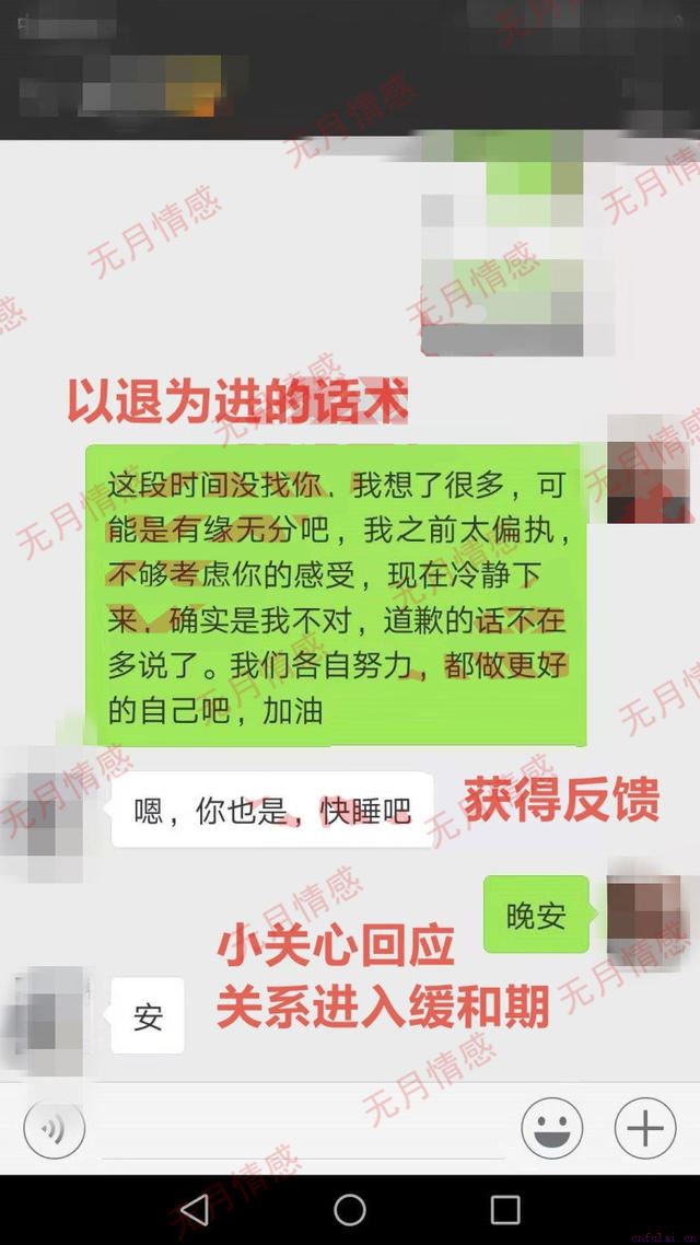 分手后,如果你的情绪崩溃,目标会表现出厌恶和抵触,两人关系对立,无法建立有效沟通。这种情况,最忌死缠烂打,为缓和关系,避免矛盾进一步激化,我们要求王鑫迅速断联,彻底从对方视线里消失。也许你会担心她跟你就此真的断了,又或者出现新欢。