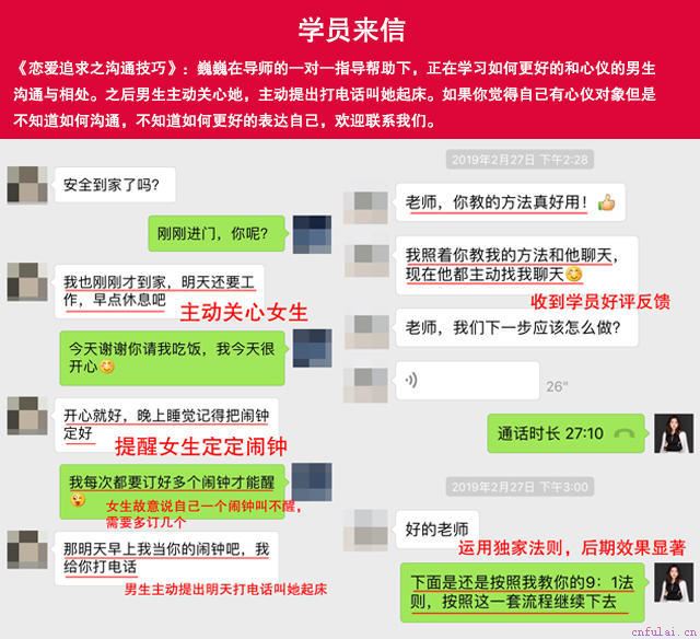 如果,你也想追求自己的幸福,想要提升自己的聊天技巧或者是感情方面的缺陷,可以添加导师,添加微信前20名可获取与导师一对一免费咨询的机会,将你的情感状况告诉导师,导师会根据你的情况进行详细的分析与指导!另外,导师的朋友圈还有大量撩汉技巧,可以免费学习!