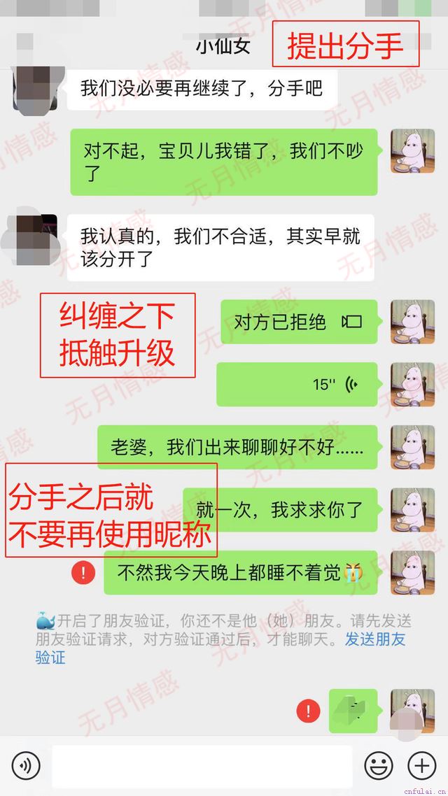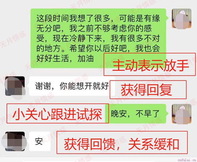 挽回中,不要总是以自我为中心,不懂得换位思考,会让你的控制欲和情绪化随时暴露。本案例只需要冷处理一周左右,根据对方朋友圈状态,导师分析到达了复联时机,帮助高明编辑了复联信息,发给对方(微信已经加回),承认分手关系,采取以退为进缓解抵触。