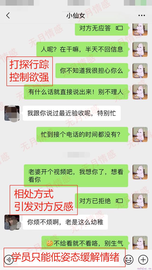 相处的依赖性不能过强,一方面会给对方带来压力,影响了相处舒适度,另一方面也显露了自身的价值缺失,暴露不自信,男性魅力降低。相处出现问题之后,内心不安很正常,但是想要靠控制来抓紧对方,结果必然适得其反。而且我们看本案例中,每次冲突之后,学员不擅长解决问题,而是一味的避免冲突,甚至冷战搁置问题。其实学员对目标有很多负面情绪,只是选择了积压,导致自己的情绪把控力大大下降,后期情绪失控,连续争吵,萱萱更加不能接受,造成分手局面。