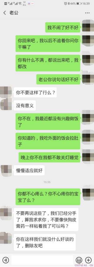 回家后我们大吵一架,虽然后来我主动认了错,但是我感觉到,他对我开始冷淡了,我嘱咐他做的事情,他也很敷衍还经常忘记,经常会为了一些小事和我吵架,我也忍不住的和他吵,吵完以后我们就会陷入一段时间的冷战。我心里明白再这样下去,我们两个的感情就完了,所以我找了个时间主动约他出门散散心,去我们一直想要去的地方游玩一下,但他却说自己的时间都排满了,没时间陪我去,我的心在听到他说不去的那一刻,心一下子就冷了,问他是不是不想要和我继续了。他沉默一会告诉我,两人和平分开吧,并且当晚就走了,东西都没拿。其实我只是想要让他对我重视一点,不要在忽视我了,而且我真的很爱他,不想和他分手,但无论我怎么哀求他、向他保证,他都无动于衷,甚至拉黑了我的手机号和微信。
