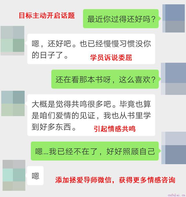 我陷入到了崩溃之中,不知所措。接下来的日子,我偶然间在点解情感上看到了拯爱辰辰老师的一篇文章,里面的学员案例和我的经历很相似,在老师的帮助下居然成功挽回了男友。我感觉到很吃惊,抱着试试看的心理,我加了老师的微信。