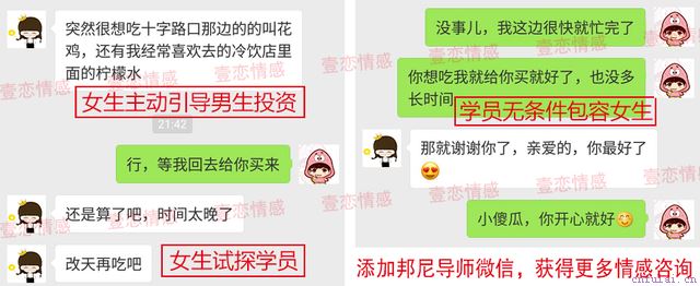 学员在这段感情中单方面的过度投入,对目标提出的要求百依百顺,把自己的全部注意力都放在对方身上,忽视了对自身框架的建设,以及个人价值的塑造,导致学员对目标无法产生吸引力,同时在这段感情中的情感投资失衡。