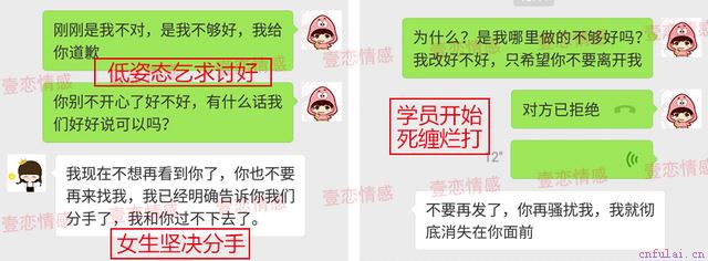当目标提出分手,学员更没有给予双方足够的情绪缓冲期限,反而在目标心理脆弱、情绪紧张的情况下对其进行电话、微信的轮番轰炸。这种骚扰形式的挽回,使目标对当前状态产生厌烦,最终因不堪忍受而选择删除双方联系的方式逃避学员,导致局面进一步僵化。