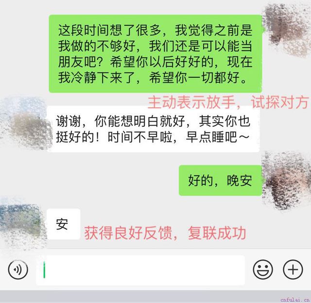 在这段感情的复联中,只需要一周左右,导师的分析帮助了学员成功复联,加回对方信息,承认了也接受了这段分手关系,以退为进的方式已经达到了复联的目的,最终成功挽回了小雅,也重新回到了热恋中的甜蜜。