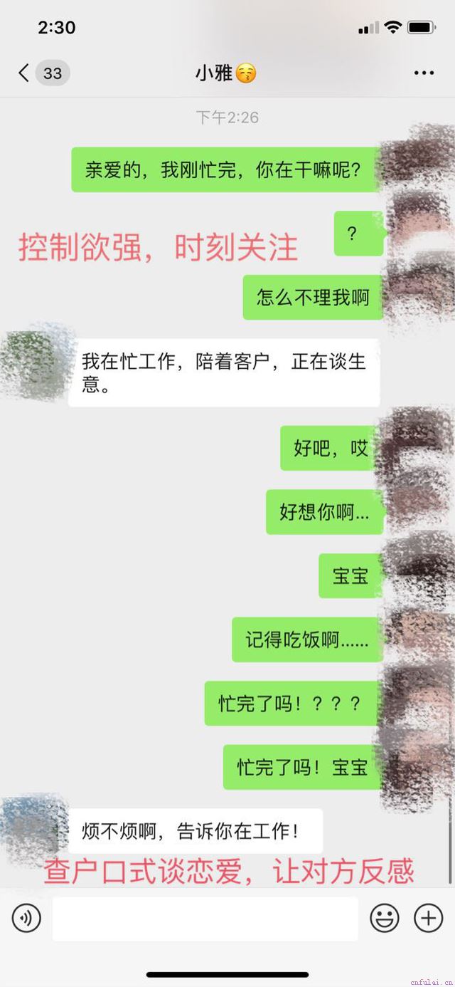 两个人都是企业的白领,各自的条件都很好。但是两人的相处中,阿文的依赖性太强,给小雅带来了很大的压力,甚至这种无休止的调查式谈恋爱引起了对方的反感,控制欲极强的阿文,以为自己对她的好,却被换来分手拉黑。其实,兄弟们可以看到案例中,学员根本不想着去解决问题,而是不停地冷战,激化矛盾,导致被分手。学员的积压情绪顷刻间全部爆发出来,造成事态的严重化,小雅不能接受这样的阿文,造成分手。