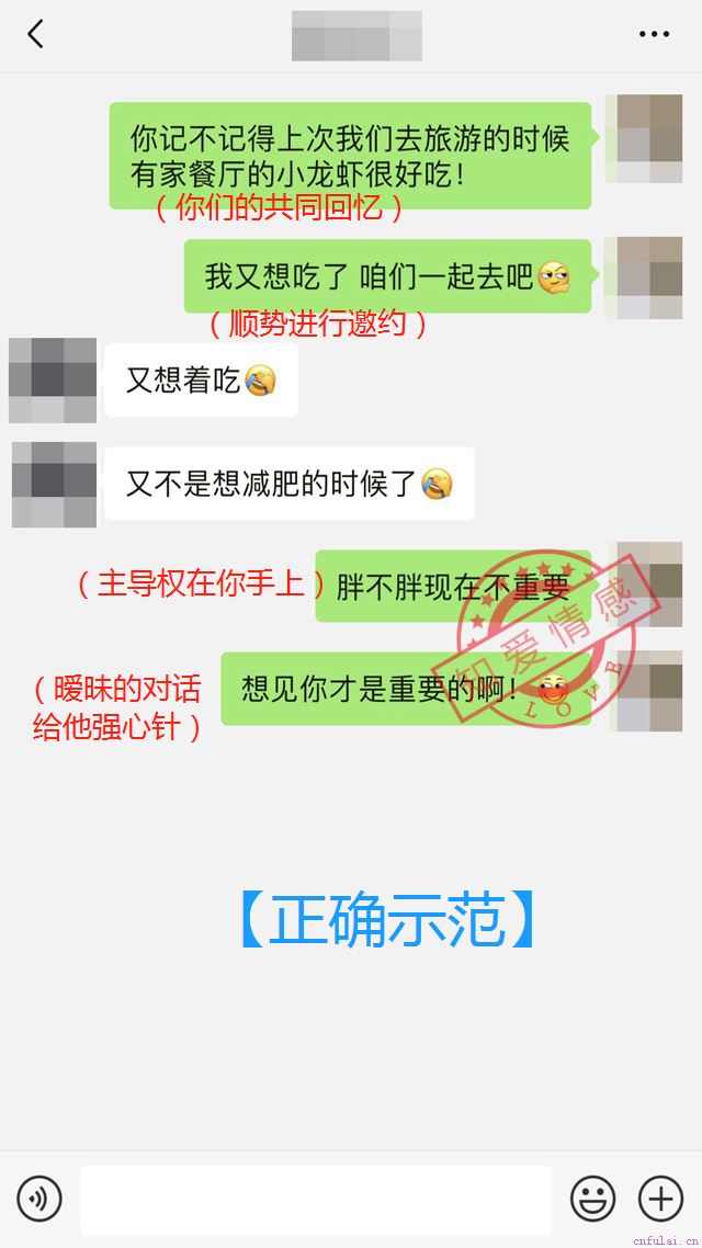 这时候的你其实已经不像最开始分手时候那样歇斯底里,虽然你还是很想复合,但是也绝对不会将这个情绪放在表面上了,那么我们要通过什么样的方式来表达出来你对他的爱呢?此刻朋友圈还有你们的共同好友就能够发挥作用了,朋友圈中你要展现你积极向上的一面,将丧气的情绪全都隐藏起来,也可以在你们共同拥有的群聊当中发一些美食,发一些好玩的小地方,一起玩一些小游戏,这时候切记不要对方有了一点反应就很激动,不要着急,这一阶段要的就是让你们的感情慢慢重新升温,渐入佳境才是正确的!分手之后不要消极,不要迫切卑微讨好,只要找对方法,挽回其实并不难,添加老师微信点击#微信#,老师一步一步教你挽回!