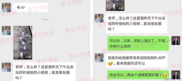 挽回是讲究方法得,如果你现在不知道你们之间是否还有机会挽回,又不甘心你们的感情付之东流,那么朋友请添加我们的微信,点击微信跟我们一对一的咨询,我们会根据你和女孩的双向性格进行分析解答,帮助兄弟解决情感问题。这样更新着朋友圈日常动态,在经过两周多的朋友圈搭建后,目标也开始对学员的动态点赞了。此时学员的情绪有些波动,在导师的安抚下渐渐平复。这时,导师安排学员隔一天就去目标朋友圈进行评论,但在评论过程中不得擅自操作,一定要导师确认之后才可发送。