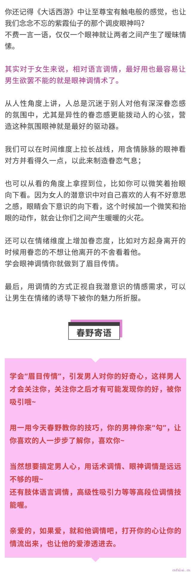 想要得到优质男人的青睐,想要知道怎么追男孩子,想要学习追男孩子的技巧方法,除了努力提升自身的价值外,学会提供情绪价值也是最应该修炼的部分。获取,春野导师团队一对一指导你的情感问题,让导师教你做真正高情商的女人,懂得如何充分调动起男人的情绪,刺激男人的肾上腺素分泌,让男人对自己永远感兴趣!
