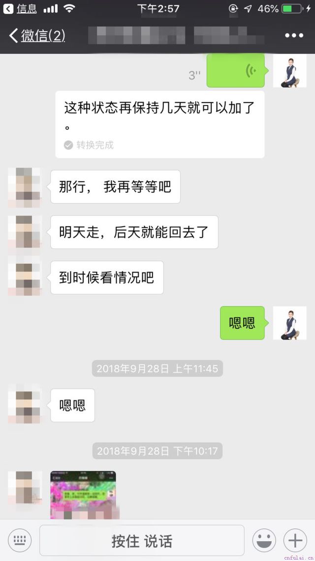 首先,我要提到一个名词攻心,什么叫攻心?攻心就是准确的把握女方当下这个阶段真实的心理活动,了解她情绪变化的曲线和当下的需求。真正的挽回要做到的是一针见血刺痛她的内心,根据她的心理需求去操作,而并非让你去做一些盲目的提升,让你发朋友圈,让你换头像,做一些所谓的价值提升,这根本就不是攻心,这种流水线套路模板式的挽回,称不上私人定制。每个人性格,感情经历,思维模式都不一样,每对情侣分手原因都不一样,挽回要找到你们分手的本质原因,对症下药。你要明白,女生会因为你换了个头像,发了几条装逼的朋友圈而跟你复合吗? 不可能的。所以,接下来我将详细讲述一下我是如何指导学员采取攻心的方式去复联的,以及挽回过程中的几个关键点:学员和目标后期的主要矛盾是由于经济因素产生的矛盾,加上目标回娘家养胎后,回复学员的消息,完全是根据自身情绪去判定。在学员找到我们之前,他们已经一个礼拜没有联系了,后面学员发视频电话也被目标拒接了。因此,在分析完双方情况之后,我让学员给目标发过去4个字你辛苦了!。这4个字发完五分钟后,目标给学员回复了消息,并指出自己对这段婚姻的种种不满。目标对学员发泄了自己的情绪后,我让学员对目标继续进行攻心,表达自己对目标的关心,并且认可目标在婚姻家庭里的价值,去跟目标发出共情。告诉目标自己正在一步步去改变,希望能给目标带来更好的生活,给两人的孩子一个温馨且温暖的家。这个时候,双方在电话中虽然是复联成功了,但目标对学员的抵触情绪依然非常强烈。而我了解到目标自怀孕以来,学员对目标的关心确实不够,于是我指导学员去主动提出,给目标买孕期吃的药。