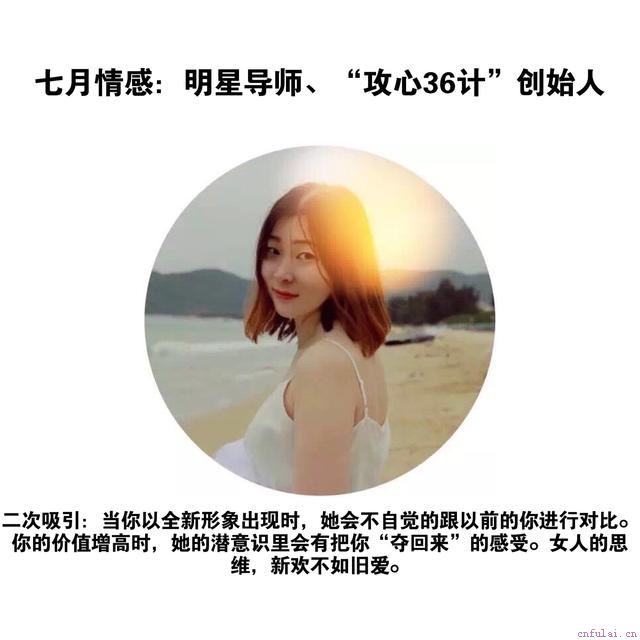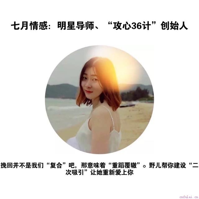 七月情感一直致力研究挽回等高难度情感,术业有专攻,从业期间,已成功挽回上万案例。你要相信,选择比努力更重要。挽回的意义不是套用一套公式,得出一个结果。任何方案都是经过导师细致了解后给出的攻心计策,请不要轻易模仿。我们学习的目的不是如何套路一个人,而是学会用她能接受的方式爱她。七月情感不敢保证是你最好的选择,但绝对是最负责任靠谱的团队。记住,你挽回之所以不成功不是因为你笨,而是因为你没有掌握正确的方法。今天加野儿老师微信,发送学习。老师会送你们限量秘籍,给想学习的兄弟们打开一个大门。