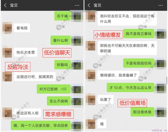 一味的闹个人情绪,只会让女生觉得你是一个无理取闹的人。情绪控制能力差指的不仅仅是对女友发火,而任由自己放大情绪感受,从而忽略了对方的情感需求。