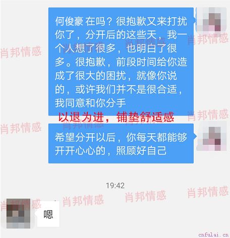 这里,辰辰咨询师需要向大家明确的一点是,这个时候,你最需要在意的不是怎样能让自己觉得舒心,而是考虑怎样让对方的心里感觉舒适,不停的给对方施压是错误的。