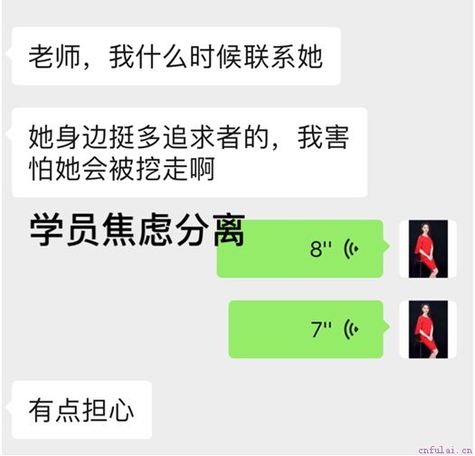 在导师的建议下,这次吵架期间,改变之前一味求和的状态,而是趁这段冷冻期好好思考这段感情的走向,你想要如何走下去,以后是什么样的结局。在心理导师指导下,学员不断学习女性心理学,将感情经历的每一处细节进行剖析,为学员解决所有的心理障碍。在这期间学员有很多次想和女生取得联系: