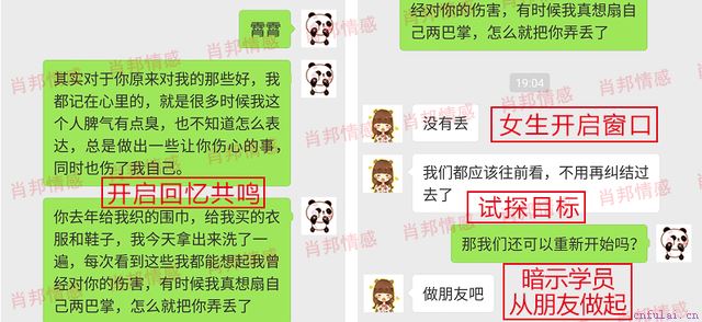 这个时候,我也断定目标开始走过了那段尴尬期,对学员的情绪也有了很大的缓解,只需要我们去突破这个关系了。这个时候,两个人虽然只是朋友关系,但不可否认的是,目标已经开始重新接纳学员了。今天只是给大家重点介绍了一下这个案子复联的过程,因为整个私人定制的案子,每一步都是我们精心斟酌,仔细推敲之后去做出的指导。毕竟要是整个案例去讲,可能几万字也写不完,这其中滋味,或许只有学员和我们的咨询师才能切身体会。