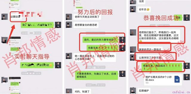 王睿看软的不行就来硬的,说她是不是在外面找了别的男人要和他分手,还扬言要是发现林霄和他在一起,他就去找那个男的谈谈。没想到反而激怒了林霄,直接把王睿的电话给拉黑了。王睿这下就真着急了,于是就在网上胡乱搜索办法,找到了一个自称可以帮他解决情感问题的团队,于是王睿想都没想报了名开始挽回。因为两个人还留着微信的联系方式,于是对方就让王睿去断联,然后改造提升发朋友圈,把王睿打造成了一个商业精英。