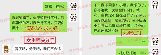 而这些行为在双方的情感关系中,就明显的体现出目标的姿态过低,从而渐渐失去了自身吸引力。其次,就是前面说到的两人发生的那次矛盾,出现了沟通不当的问题。在目标帮忙之前,就没有与学员沟通到位,以致于引发后期的矛盾。而在矛盾发生后,目标并没有将自身情绪和需求表达出来,而是以冷战的形式去处理。