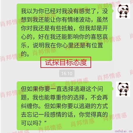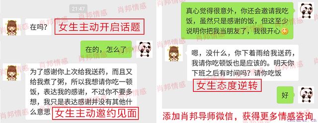 在学员做完这一切之后,就找了借口走了,这时候我断定目标会有所回应,毕竟这时候目标的心理其实是很脆弱的,她不肯面对学员,只是因为还没有放下过去的那些结缔而已。果然,晚上九点左右,学员收到目标的邀请。