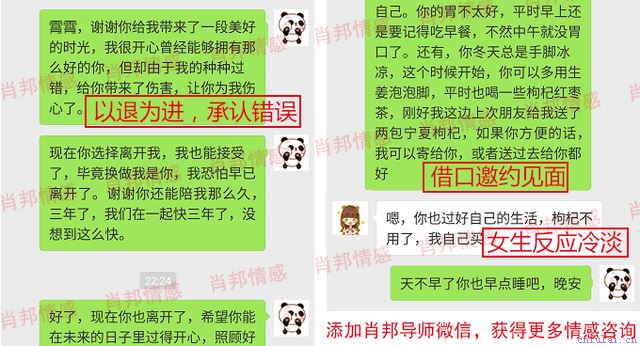 挽回女友并非难事,难的地方是用对了符合情况的挽回爱情方法。坚持使用正确的挽回方法,才能有效地提升成功挽回女友的概率,也能更快速地挽回女友,祝大家早日挽回女友,找到属于自己的幸福。各位兄弟有什么情感问题需要咨询的,可以点击我的头像,添加我的微信点击微信#微信#,与我们一对一的咨询,我们会根据你和女孩的不同性格和你们的现实情况进项全方位的分析解答。另外,导师朋友圈还有大量挽回干货,兄弟们可以添加导师微信免费学习!(如果加不到我的微信,那你可以点击我的头像在这个软件上私聊我,把你的微信号发给我,我来加你!今天添加辰辰导师微信,发送我要挽回,将与导师进行一对一咨询的机会,我们将会告诉你挽回的成功率,针对你的情况进行详细的分析,为你的爱情保驾护航。