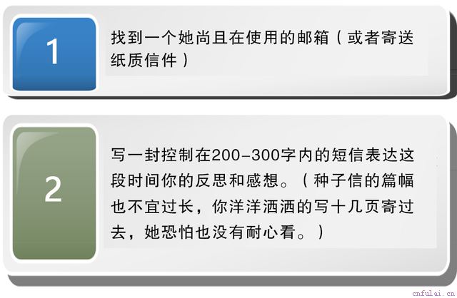 什么是种子信呢?就像在她心中种下一颗复合的种子,让它自己发芽,挠得她内心痒痒,然后主动来联系你。而这颗种子,是以信的方式去呈现的。先讨论一个问题:为什么要用种子信?除去这可能是你们唯一还能沟通的方式这个原因之外,信件有一个很好的有点:它能够让对方完整的看完你的表述。