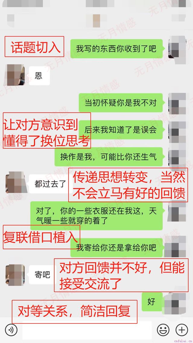 分手后很多情侣之所以拉黑对方,就是因为担心会迎来无尽的纠缠,而种子信就是在这短短的200—300字中明确的传递了这样的思想:我已经接受了事实,做出了改变,以前是我不够成熟。现在我想单纯的以朋友的身份再和你建立联系,让你看到不一样的我。经过导师指导操作,王明成功加回目标微信,进入短期断联。