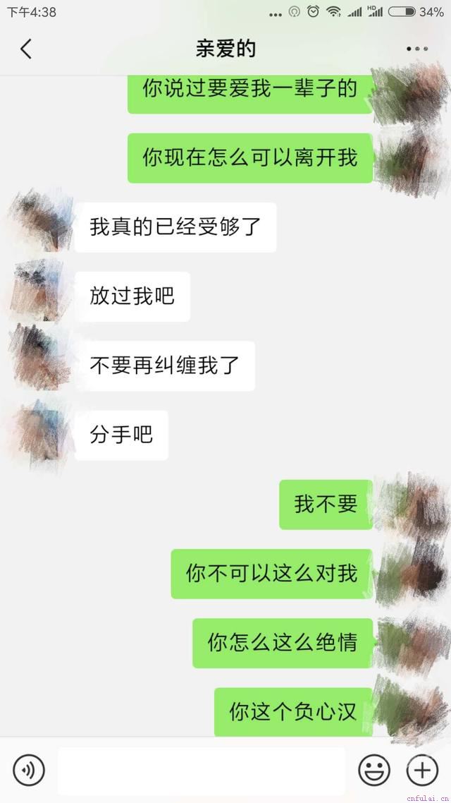 之后我一直给他发信息,打电话,他就说他受够了,让我别再纠缠他了,态度非常冷漠,我感觉我们真的没有希望了,但是我真的舍不得也不甘心。