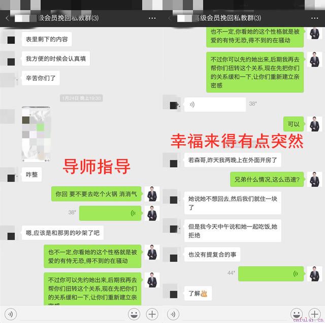 我举的这几个案例,都是时效性相对较快的。可能对于很多人来说,时效性越快,越不能考验一个导师的能力。既然如此!那我再分享一个能真正考验导师技术,有波折,有痛苦,有感情的案例。真的是手把手教这位兄弟如何去击退第三者,挽回自己女友的。王泽是我1月底的钻石挽回学员,也是我全程跟踪的学员。之所以写他的案例,是因他的挽回老是一波三折,直到服务期即将结束才把双方的感情稳定下来。