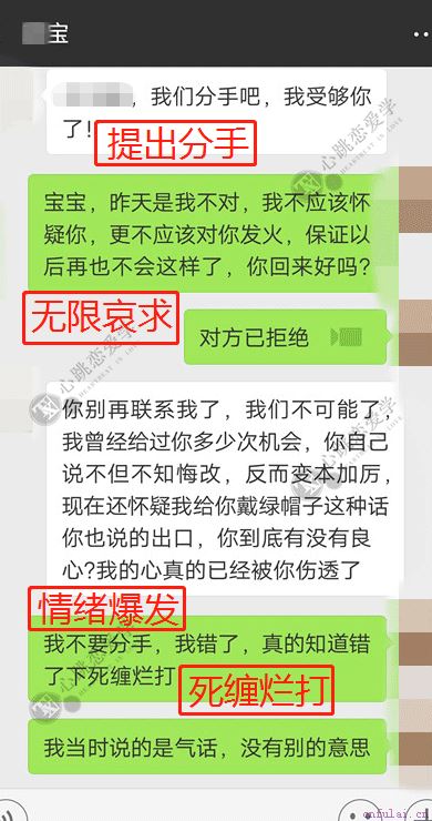 阿明发现丝丝好像有了新的对象时,情绪马上就失控了,疯狂的打电话给对方。在这一点上,他做的不是挽回而是骚扰。遇到问题时不懂得冷静下来处理,而是走向两个极端,要么隐忍要么大爆发。最终导致女方提出分手并拉黑阿明。如果阿明在挽回中,能静下心来分析情况,就能避免分手至少可以提前做挽回。