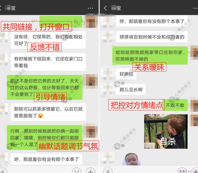 导师随即对学员进行实时性话题指导,主动贴合目标兴趣话题点进行交流,并为其提供一对一专业聊天指导服务,为学员详细讲解对方言语中透露出的真实想法与需求。学会主动引导目标情绪,通过适当幽默话语调节聊天气氛才是这个阶段聊天的重点。慢慢的,两人之间的交流越来越深入,聊天话题越来越广泛,整体气氛也越来越轻松。根据反馈的聊天资料来看,学员在话题上占据主导地位,也能够正确把控住目标情绪点。