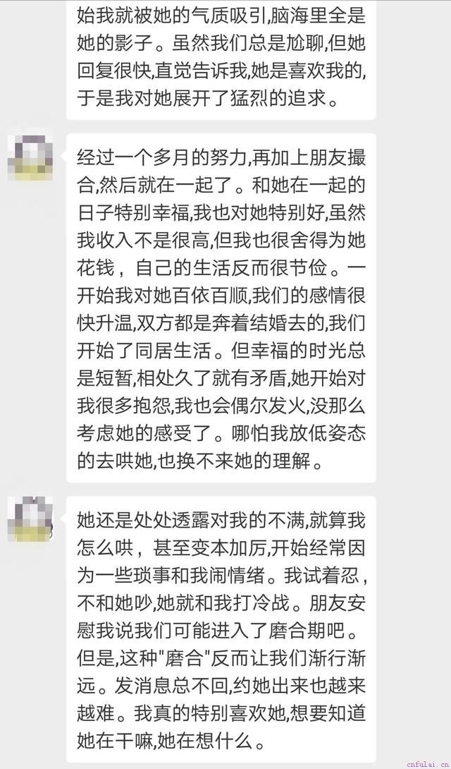 感情出现了问题,未必就是走到了尽头,如果你仍然放不下这段感情,想要挽回挚爱,那么请添加导师微信,点击#微信#咨询老师,跟我们一对一咨询。老师会根据你和女孩的双向性格进行分析解答,告诉你成功率,以及后续操作方法,并给予适合你的课程及服务建议。老师的的朋友圈有大量干货可以学习,以及更多全程完整挽回案例。