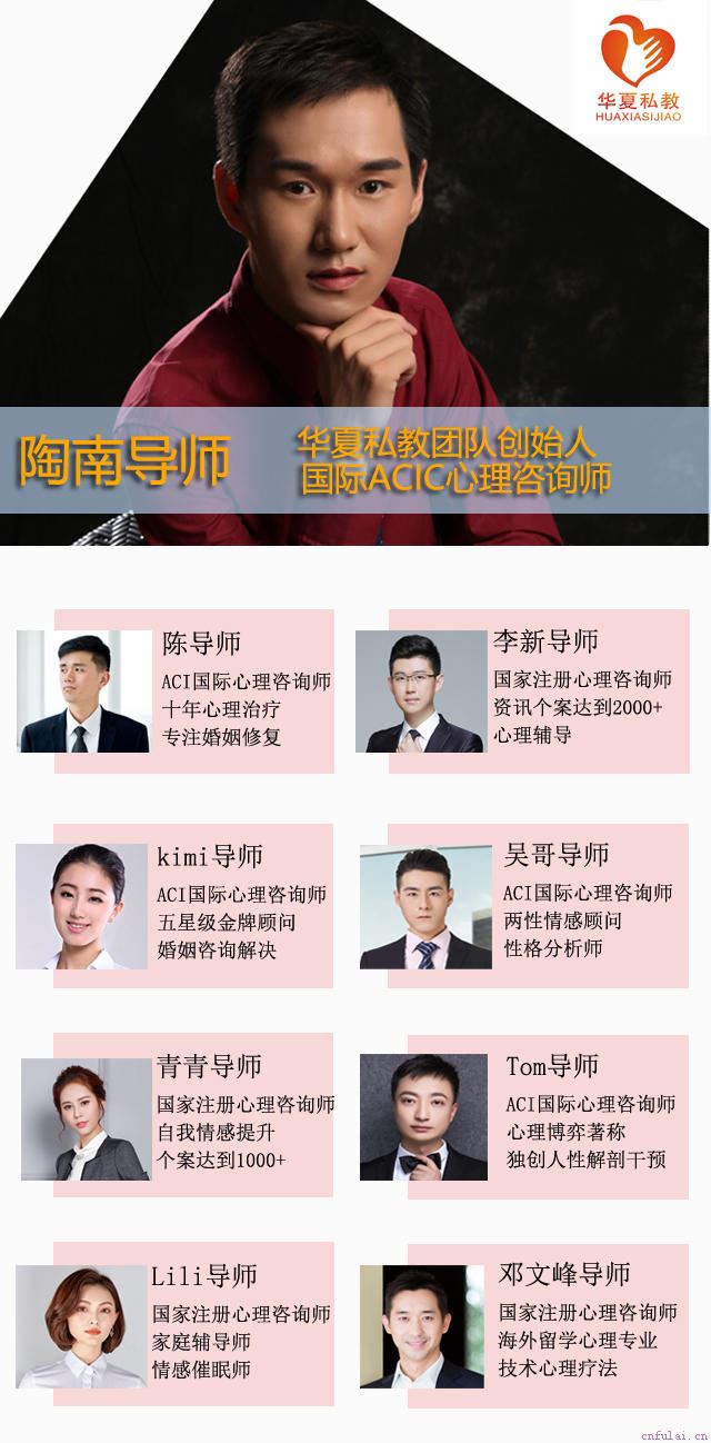 大家好,我是华夏私教团队陶南导师,8年来一直专注情感分析研究,曾一对一指导超过3000位学员成功挽回爱情,大量案例让我积累了丰富的实战挽回经验,我擅长的方向包括:挽回爱情、修复婚姻、分离小三、真爱狙击、长期关系维护、自我提升及其他各类情感问题。如果您在感情问题上遇到了麻烦或者有什么困惑,都可以添加陶南导师#微信#,帮你一键挽回心爱的Ta。