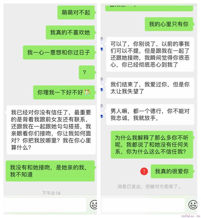 这天,我正在收拾店里的账单,前女友不知道从哪里冒出来,尽然亲了我一下,而这一幕,刚刚就被回来的萌萌看见了,看到萌萌伤心的泪水,我的心也是碎了一地。我连忙向萌萌解释,结果她根本听不进去,反而越发厉害了,说我一直都在欺骗她,骂我是渣男,脚踩两只船,我给他发消息,打电话,她一直不理我,还把我拉黑了,我甚至跑到她家里去,结果她还是不听我解释,对我避而不见,萌萌现在是铁了心要和我分手了,我都不知道怎么办了。