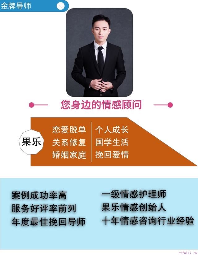 大家好,我是果乐,专注情感教育10年,主要为男生小伙伴们解决:关系修复、恋爱脱单以及婚姻问题,教你如何通过实际情感操作获得真爱。我们曾帮助6000余名学员解决了情感问题,有情感问题请加导师微信咨询。#微信#