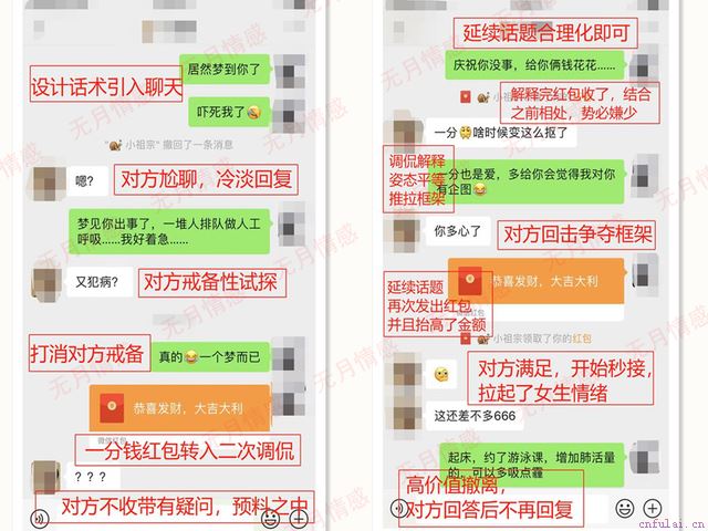 我们又安排学员冷了三天,目的是为了降低对方戒备心,同时也给学员更多学习和改变的时间。冷冻结束,我们开始指导学员和目标聊天接触,撩一下对方主动抽离。由于学员长期迎合对方,这种聊天方式大大出乎目标意料。
