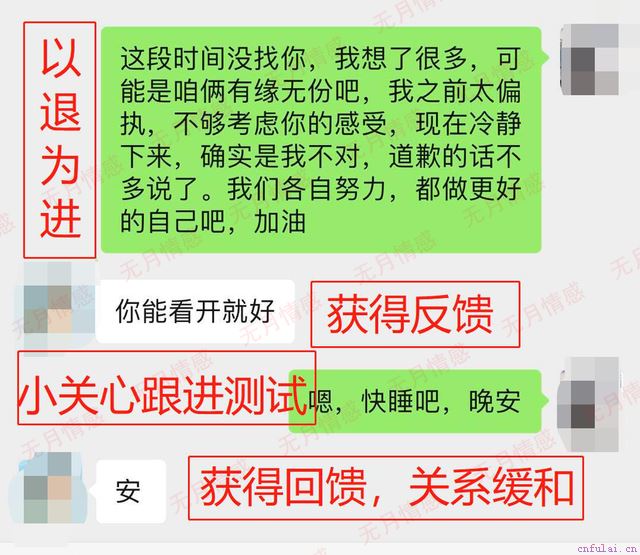冷处理一周左右,根据对方朋友圈状态,导师分析到达了复联时机,帮助王胜编辑了复联信息,发给对方(微信已经加回),承认分手关系,采取以退为进的方式缓解抵触。