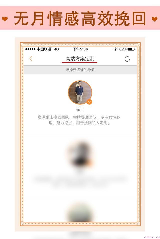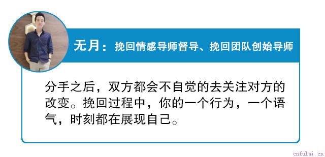 我当时很气愤,后来还打电话骂了她,但是冷静之后,我发现自己还是离不开她。为了不给自己的感情留下遗憾,我找到了辰辰团队,导师对我的情况进行了详细分析,一针见血的指出我的问题,告诉我挽回的方法,我决心挽回这段破碎的感情。