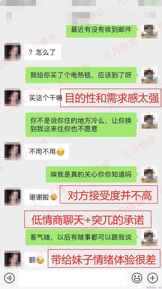 相处过程中,学员之后一味的对小雅好,多数只是物质的付出,不懂女生内心想法,导致女方的心理需求长期无法得到满足。频繁的哄女生,只会让她得到暂时的满足,当她一而再、再而三的突破你的底线,你就再也给不了她想要的感觉,就会渐渐觉得你们并不合适。如果你不懂女性心理,无法扭转和调控女生情绪,就会产生诸多矛盾,累积多了甚至厌恶,相处舒适度降低,陷入情感危机。