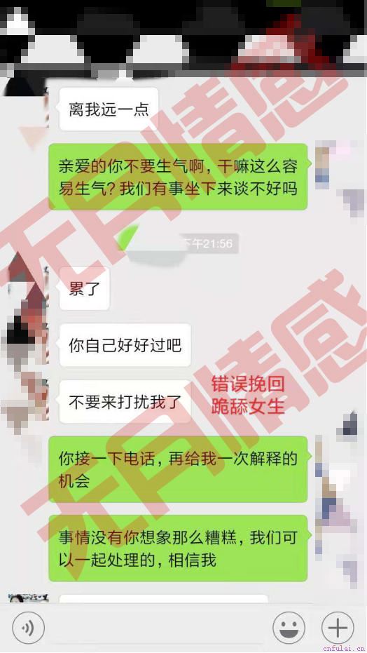 感情是经不起反复折腾的,本来很多时候有矛盾就应该第一时间去解决,但是因为两人性格的不同,很多问题都通过争执的方式去处理。男人必须要明白和女人不能讲理,女人跟你讲的是情。很多事情男人在乎的是对与错,而女人在乎的是你爱不爱她。所以女人反感的就是男生把他的思想强加到自己身上。因为女人无法想象自己在这种被控制及被压迫之下,最后会变成什么样子。分手我们要勇于面挽回,如果我们始终选择躲闪,裂隙只会越来越大,如果你不想感情就这么结束,或者正在遭遇感情痛苦,随时点击添加老师,别为爱情发愁,无论白昼黑夜,我们始终都会用尽120%的力量,让你重新拥抱你渴望的爱情。